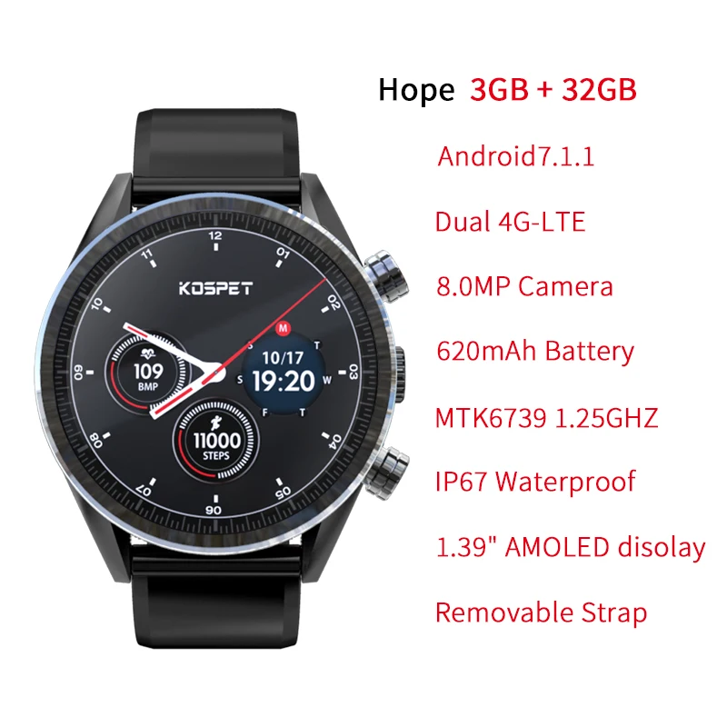 .Images of KOSPET Hope 3GB 32GB Bluetooth Android 7.1.1 1.39" 4G smartwatch men IP67 Waterproof MT6739 Camera Business Smart Watch Phone