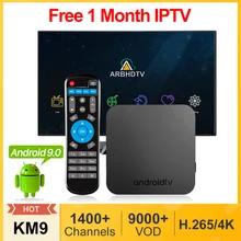 Cheap Price for IPTV France Arabic KM9 Android 9.0 Smart Tv Box 4G 32G/64G 1 Month IPTV Belgium Morocco Netherlands Turkey Algeria French IP TV